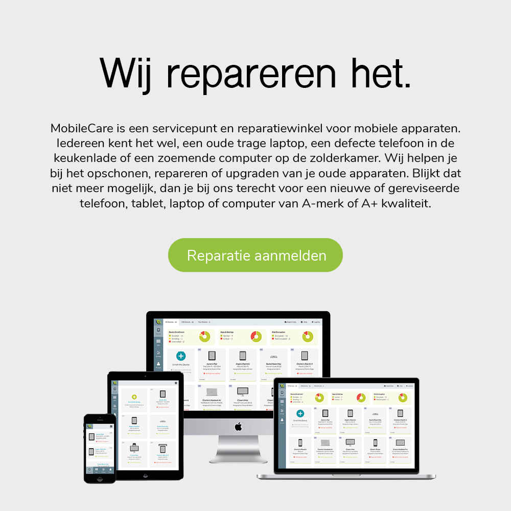 Wij onderzoeken je apparaat en bieden een juiste oplossing. Na een upgrade of reparatie werkt je apparaat weer als nieuw en kan het weer jaren mee.